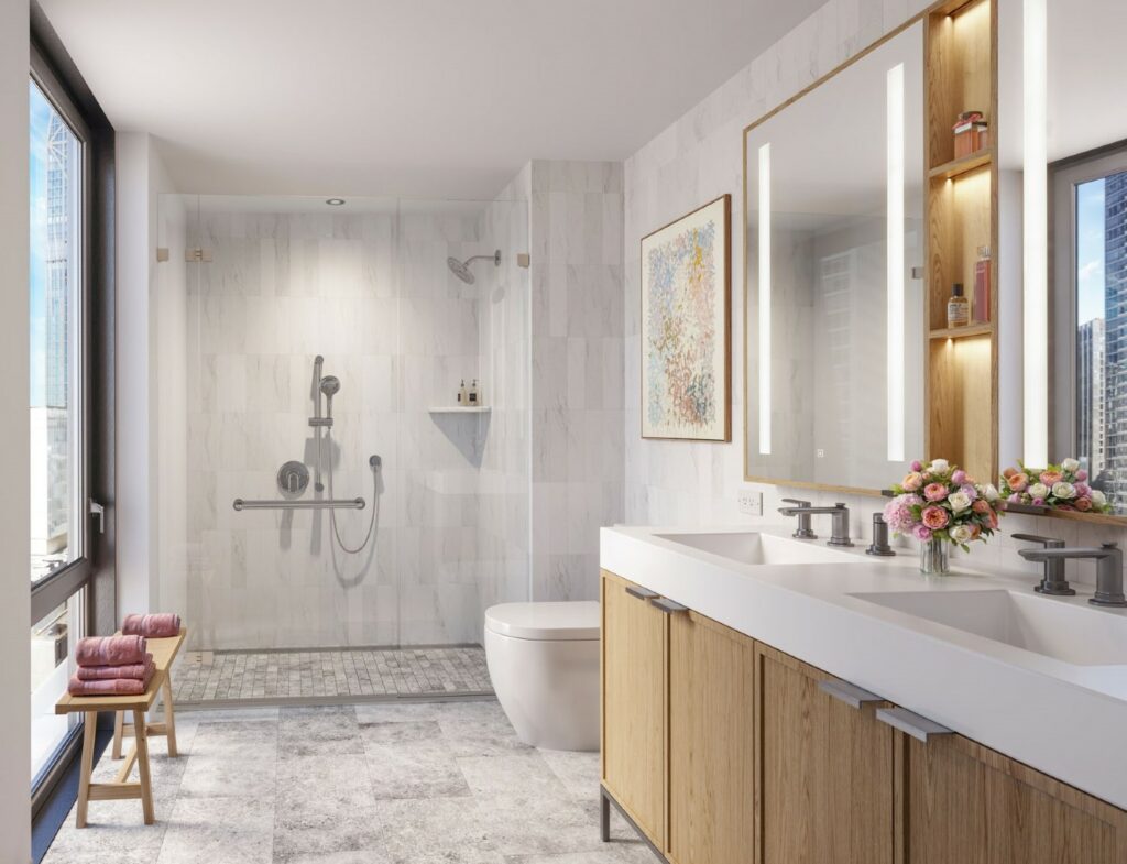 Bên trong, 97 căn hộ từ studio đến penthouse toàn tầng toát lên sự tinh tế trong từng chi tiết. 17 căn có sân hiên riêng – điều hiếm hoi tại Midtown. Sàn gỗ sồi trắng ấm áp, tủ bếp sơn bóng với tay nắm đồng, thiết bị âm tường hiện đại cùng bề mặt đá Cambria khiến mỗi không gian vừa sang trọng vừa tiện nghi. Phòng tắm như một spa thu nhỏ, với đường nét thanh thoát và vật liệu cao cấp, biến cả những buổi sáng đầu tuần thành khoảnh khắc thư thái.