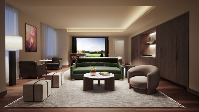 Hơn 10.000 ft² tiện ích trải rộng nhiều tầng: phòng gym hai tầng, rạp chiếu phim riêng, golf simulator, lounge giải trí, khu làm việc chung, cùng dịch vụ quản lý phong cách sống bởi LIVunLtd. Hoàn thiện bức tranh xa hoa là sảnh lễ tân 24/7, kho chứa riêng, trạm chăm sóc thú cưng.