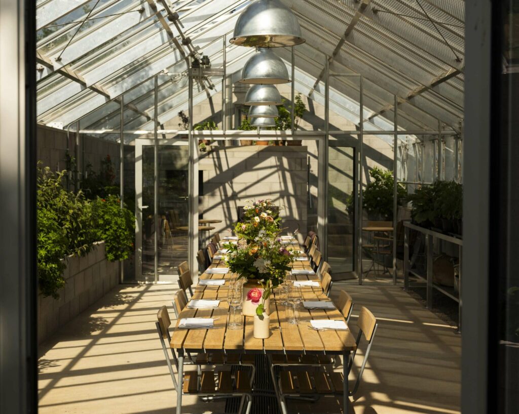 Ẩm thực tại Fowlescombe là điểm nhấn không thể bỏ qua. Dưới sự dẫn dắt của bếp trưởng Elly Wentworth, thực đơn mỗi ngày được sáng tạo từ nguyên liệu hữu cơ trồng và nuôi ngay trong trang trại từ thịt cừu, bò đến rau củ và charcuterie. Các bữa ăn được phục vụ trong The Refectory – phòng ăn 16 chỗ nhìn thẳng vào gian bếp mở, nơi mọi món ăn là một màn trình diễn tinh tế của hương và sắc.