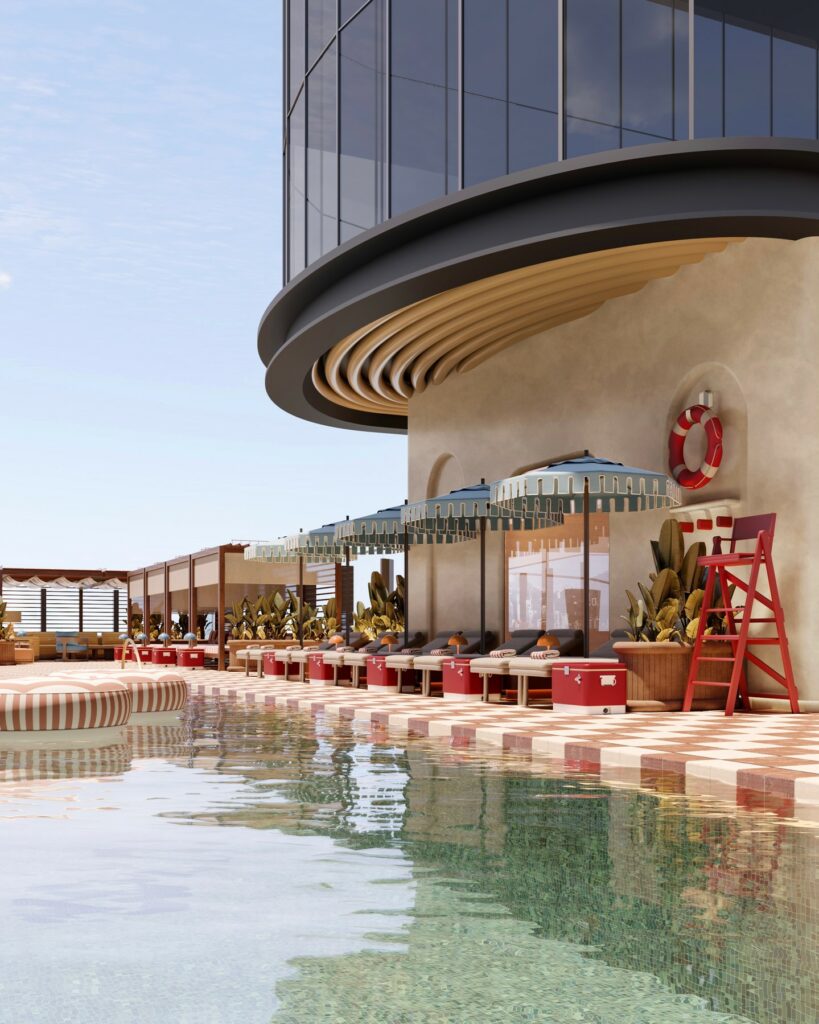 Tinh thần lifestyle của Kimpton cũng được thể hiện đầy duyên dáng qua các không gian chung. Birdsong mang đến cảm giác thư thả của một lounge đô thị, JIJA by Vicky Lau thổi vào trải nghiệm ẩm thực nguồn năng lượng sống động, còn Swim Club trên tầng thượng lại gợi nhớ vẻ phóng khoáng của văn hóa hồ bơi miền Nam California với bảng màu pastel mơ màng và quầy bar ngập tràn sức sống. Từ hồ bơi vô cực nhìn ra cảng biển đến spa Angsana sắp ra mắt, mọi chi tiết tại đây đều hướng đến một trải nghiệm vừa thư giãn vừa giàu tính thẩm mỹ.