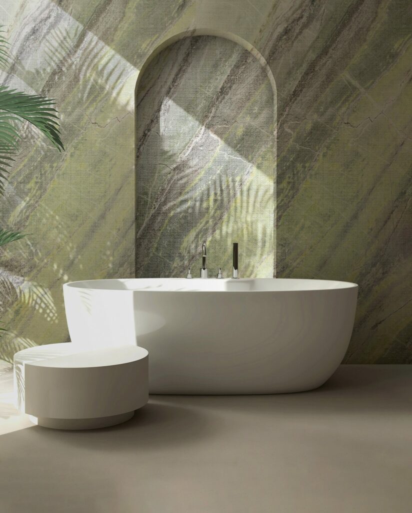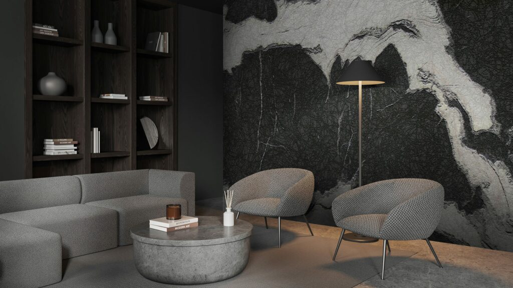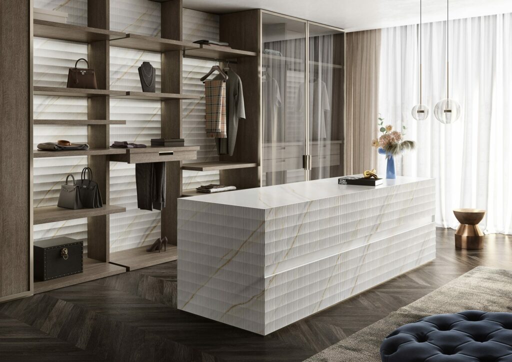Ở một nhịp điệu khác, Swing Finish tạo nên các đường chi tiết nổi/ chìm lặp lại, mang tính kiến trúc rõ nét. Những chuyển động tinh tế trên bề mặt khiến vật liệu tưởng chừng nặng nề trở nên sống động, như thể có nhịp thở riêng trong không gian. Đây cũng là nơi Antolini thể hiện khả năng biến đá thành một yếu tố thiết kế linh hoạt, không còn bị giới hạn trong vai trò nền tảng.