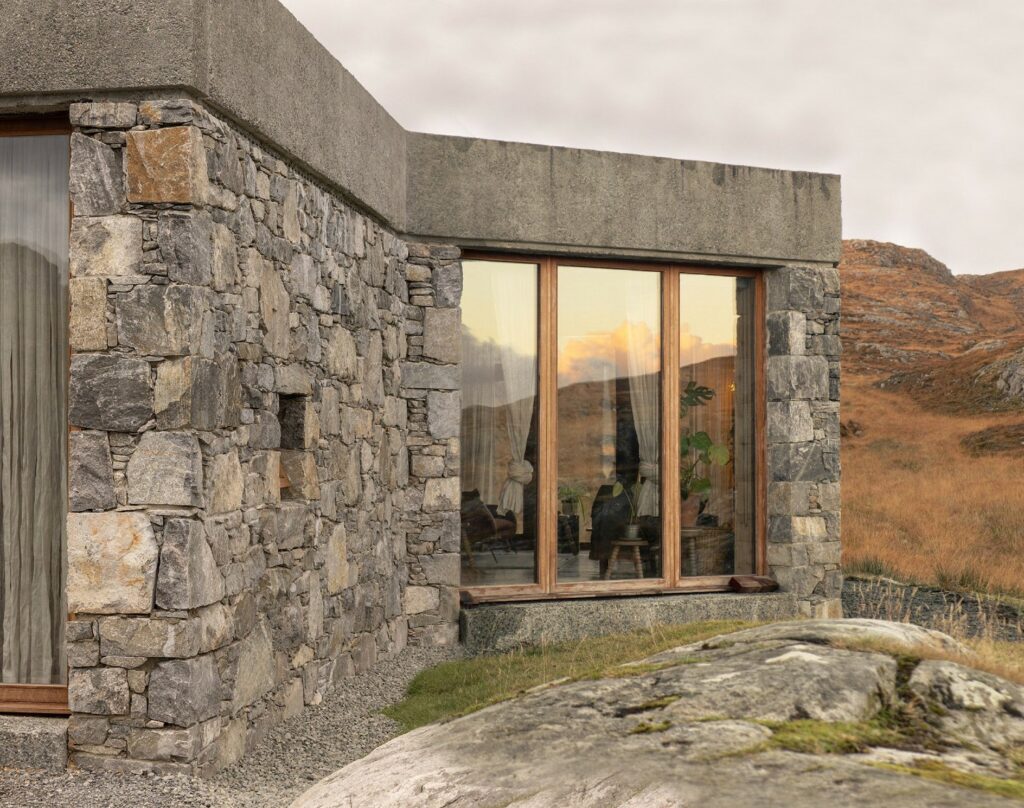 Giữa địa hình gió gắt và đá lộ thiên của quần đảo Outer Hebrides, một ngôi nhà nhỏ khoác đá đã được vinh danh RIBA House of the Year 2025, trở thành hình mẫu tiêu biểu cho kiến trúc nông thôn đương đại tại Anh. Công trình mang tên Caochan na Creige, theo tiếng Gaelic nghĩa là “kẻ tĩnh lặng bé nhỏ bên vách đá” do studio địa phương Izat Arundell thiết kế và tự xây dựng trên đảo Harris.