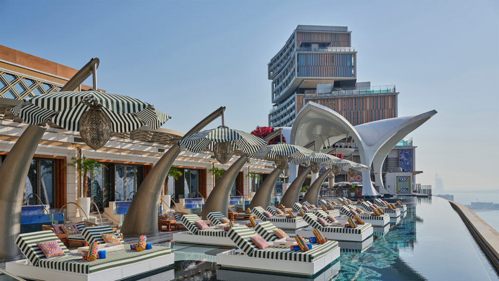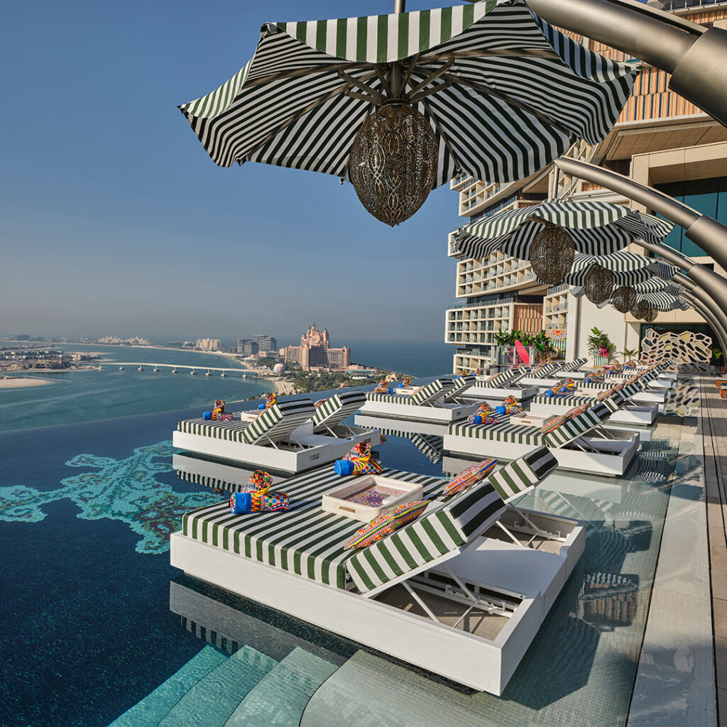 Ở độ cao 96 mét so với mặt biển, Cloud 22 mở ra tầm nhìn toàn cảnh ngoạn mục bao trùm Palm Islands, biển Ả Rập và đường chân trời Dubai. Với hồ bơi vô cực dài 90 mét, các cabana riêng tư, cùng suite VVIP hai tầng sở hữu hồ bơi riêng, nơi đây trở thành biểu tượng của sự độc quyền và phong cách.
