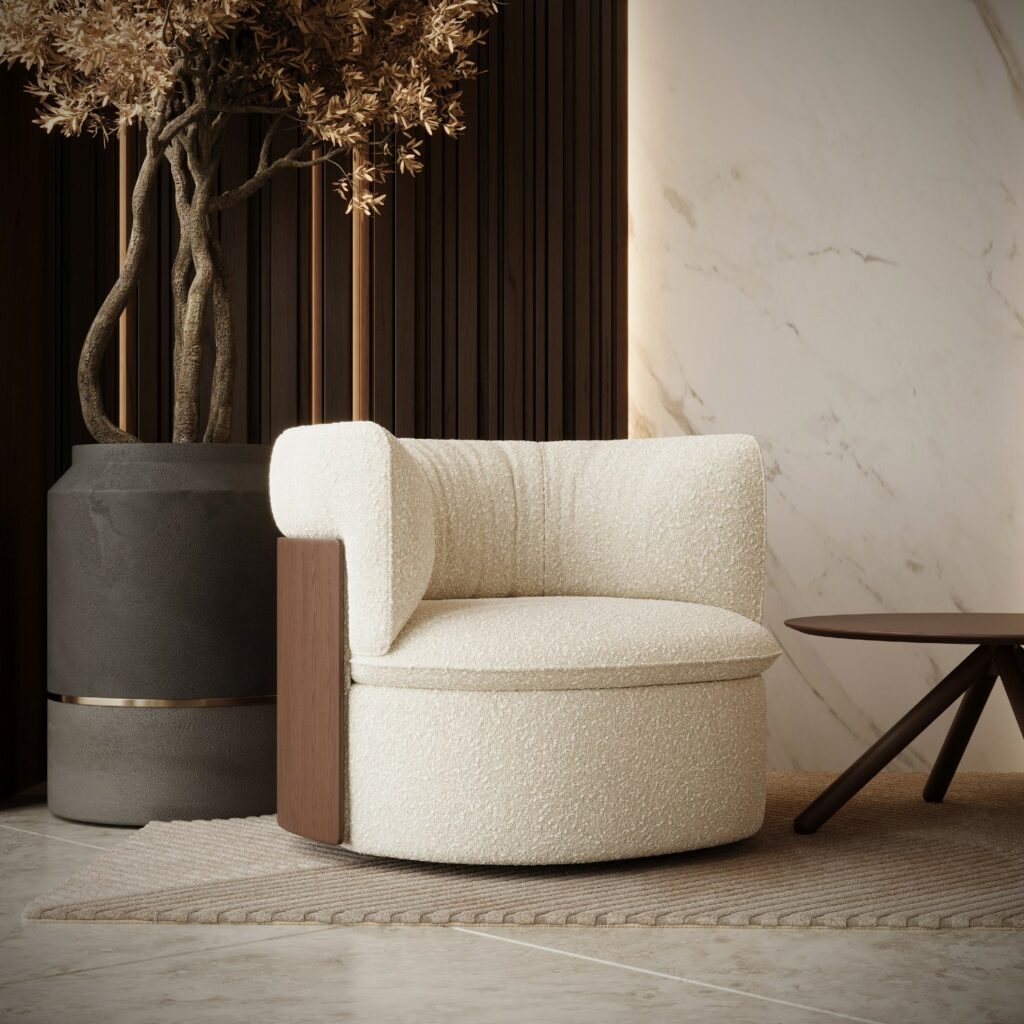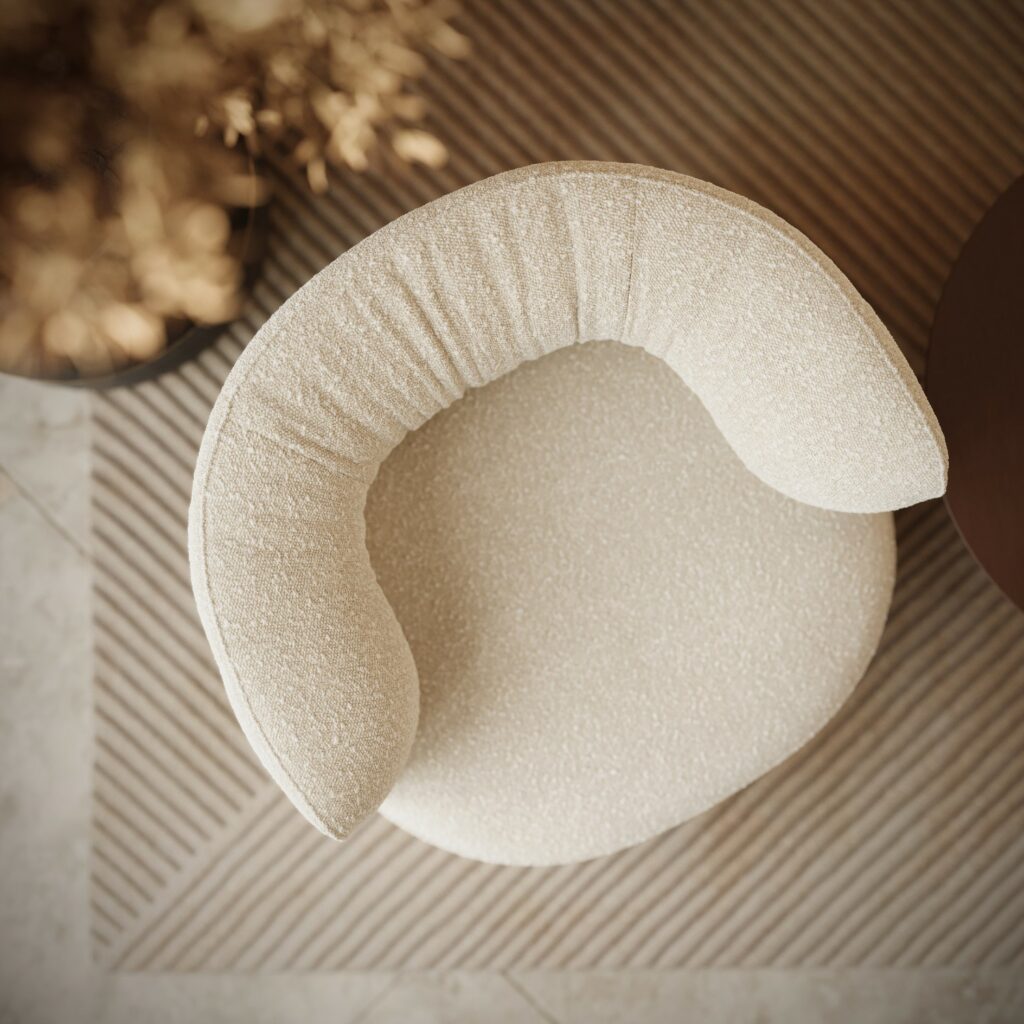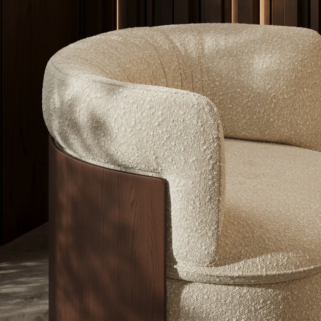 Tựa lưng cong bằng gỗ không chỉ đóng vai trò nâng đỡ mà còn mang tính điêu khắc, gợi nhớ đến tinh thần mid-century với những đường nét thanh thoát. Trong khi đó, lớp đệm bọc vải với những nếp gấp nhẹ được xử lý có chủ ý lại đưa Oko về gần hơn với thẩm mỹ đương đại, tự nhiên, thoải mái và giàu tính xúc cảm. Theo nhà thiết kế Paolo Lucidi, ngay cả những chi tiết nhỏ như nếp nhăn trên tựa lưng cũng được cân nhắc kỹ lưỡng để truyền tải cảm giác sang trọng và thư giãn.