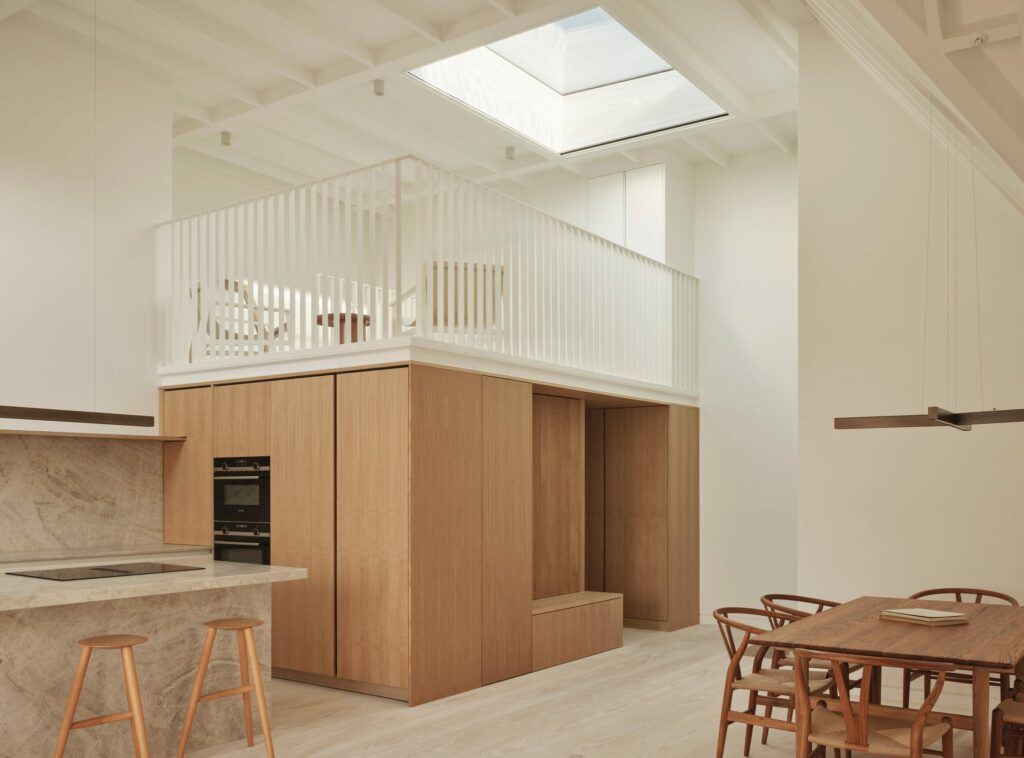 Tại khu Hampstead thanh lịch của London, nơi những ngôi nhà Victorian nằm trong khu bảo tồn nghiêm ngặt, Mata Architects đã thực hiện một phép biến đổi đầy tinh tế: mở rộng một căn hộ tầng áp mái mà gần như không để lại dấu vết từ mặt phố. Dự án mang tên Vaulting Loft là minh chứng cho cách kiến trúc có thể tôn trọng bối cảnh lịch sử nhưng vẫn tạo nên trải nghiệm không gian hoàn toàn mới.