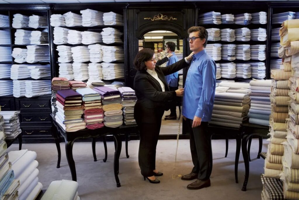Đặt may áo sơ-mi ở Charvet không phải mua sắm, mà là hành lễ. Khoảng 30 số đo được ghi nhận, bao gồm cả những bất cân xứng nhỏ bé: vai thấp của vận động viên tennis, cổ rướn của nghệ sĩ violin, thân hình nghiêng của nhà chính trị.