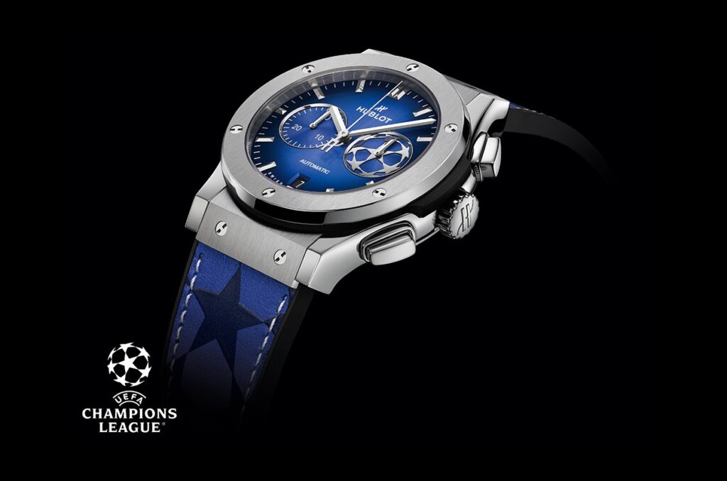 Niềm đam mê bóng đá và haute horlogerie gặp nhau ở Classic Fusion Chronograph UEFA Champions League. Titanium 42 mm, mặt số xanh gradient, logo UEFA in ở 3 giờ, dây da xanh phối cao su đen. Hộp gỗ kèm cúp UEFA thu nhỏ. 100 chiếc, mẫu này chính là biểu tượng của thể thao và xa xỉ.