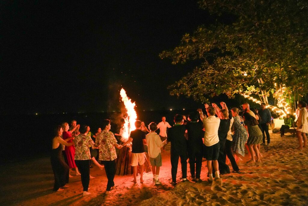Đêm hội sôi động với tiệc tối buffet thượng hạng, hòa cùng không khí sôi động với phần trình diễn nghệ thuật lễ hội bên bờ biển, bao gồm các tiết mục múa tre, biểu diễn múa lửa và đốt lửa trại chào đón khoảnh khắc giao thừa.