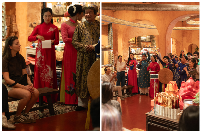 Sự kiện ra mắt bộ quà tại không gian The Bloom được tổ chức tinh tế tựa như một bản hòa ca văn hóa: nghệ nhân, nghệ sĩ trình diễn Quan họ Bắc Ninh, Ca Huế, Đàn ca tài tử và hát ví dặm, cùng trưng bày tranh khắc gỗ, mang đến trải nghiệm nghệ thuật và câu chuyện văn hóa Việt sâu sắc, đặc biệt ấn tượng cho khách hàng quốc tế.